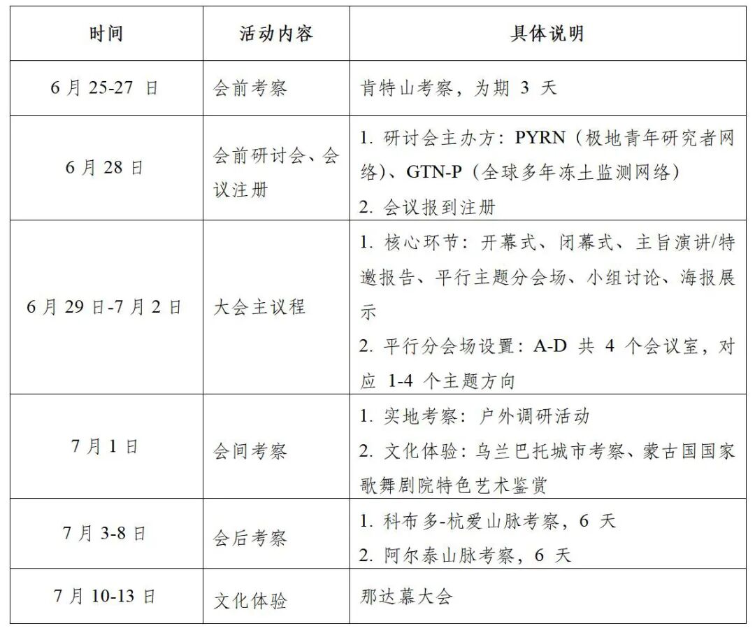 打造高水平的跨学科交流平台,汇聚全球科研、工程与产业界同仁,分享多年冻土科学的前沿成果、创新理念与实践经验。通过主题演讲、小组讨论、学术报告和实践研讨会,聚焦冻土年度动态、气候-多年冻土-生态系统相互作用、多年冻土区基础设施韧性、碳反馈以及寒冷环境中的可持续发展等议题,为相关领域研究人员、研究生、工程师与政策制定者提供分享科研成果、建立合作、深化认知的交流平台。
