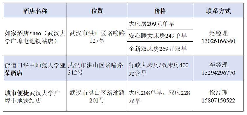 会议以优惠协议价格为参会代表推荐以下酒店,请尽快联系酒店预订,费用自理。