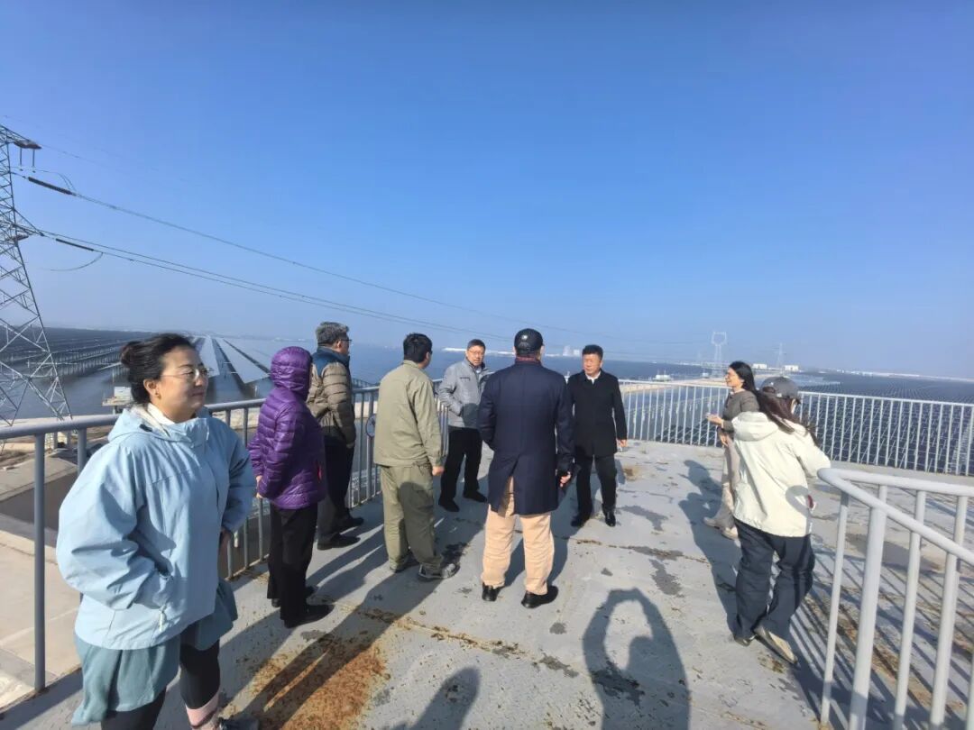 科普报告后,党员专家一行驱车奔赴通威渔光一体生态产业园和黄河三角洲研究中心试验场站进行实地调研。