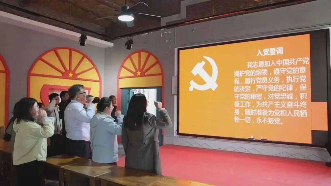 中国地理学会党委秘书于信芳带领全体党员面向党旗,举起右拳,庄严重温入党誓词,铿锵誓言与50年前的垦荒号子同频共振。